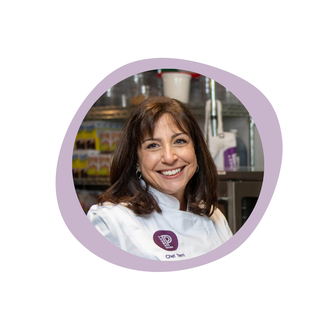 Eat dessert first is Terri’s philosophy. With her love of food, cooking and a passion for baking, she brings all the ingredients for a recipe for success. Terri is a classically trained pastry chef, earning her degree at Florida Culinary Institute. Her love of baking led to the launches of two successful companies, Courageous Cookies and a dessert catering company, Terri’s Treats. Terri worked for the nationally syndicated Mr. Food television news segment, testing and developing recipes as well as worked for an upscale specialty bakeshop, Passion for Pastry. She is excited to share her knowledge and love of baking with everyone who comes into the kitchen!