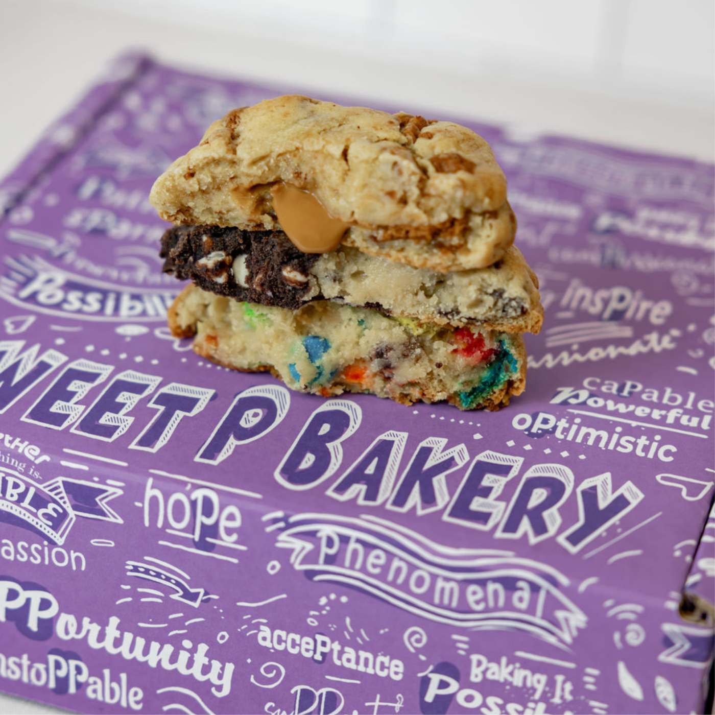 Every Colossal Cookie from Sweet P Bakery is made and packaged by our bakers with care and pride—thoughtfully prepared for your event from start to finish.